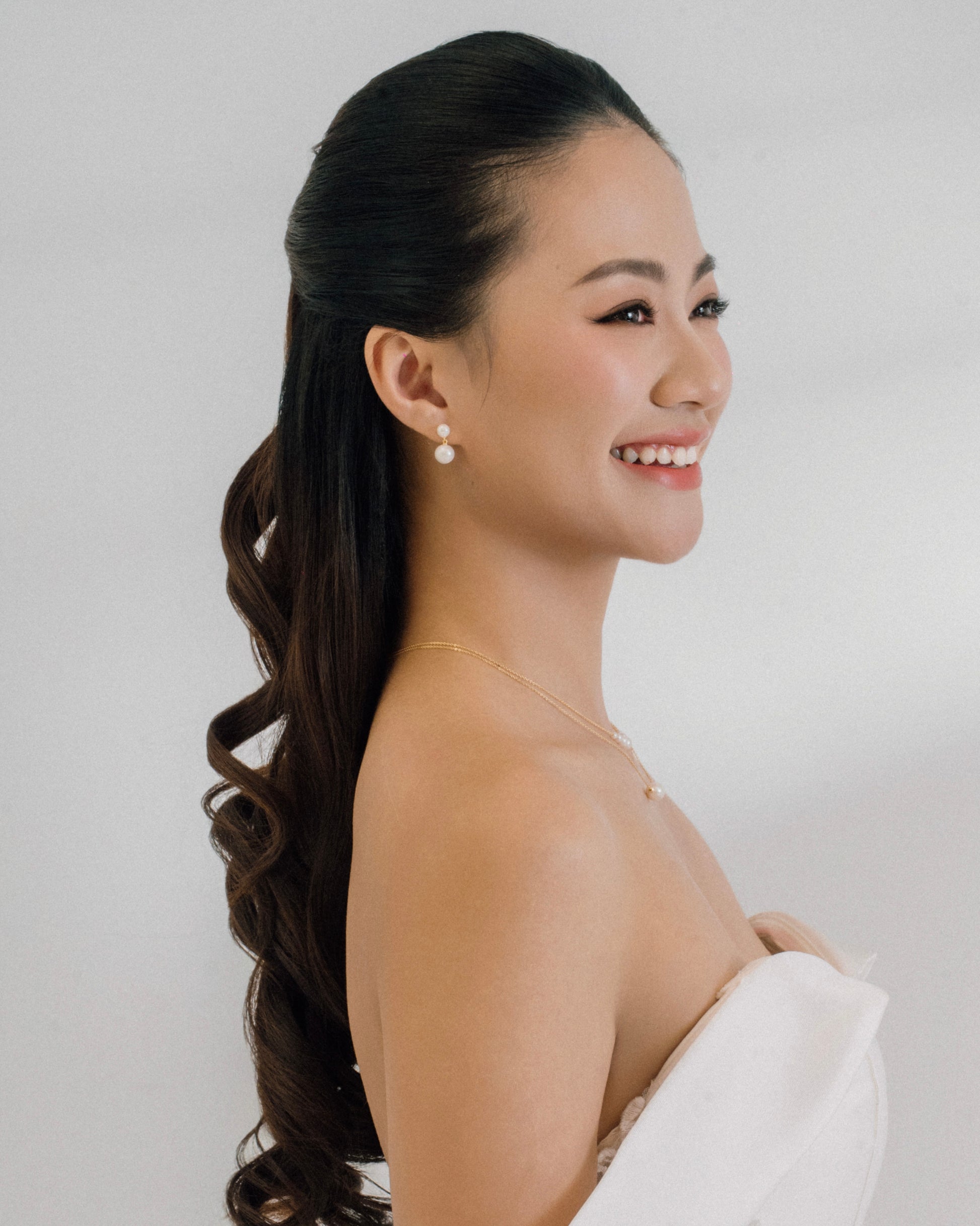 Pair with an elegant updo or flowing hair to let the pearls catch the light beautifully. These earrings look especially enchanting when layered with other pearl jewelry for a cohesive bridal-ready look.